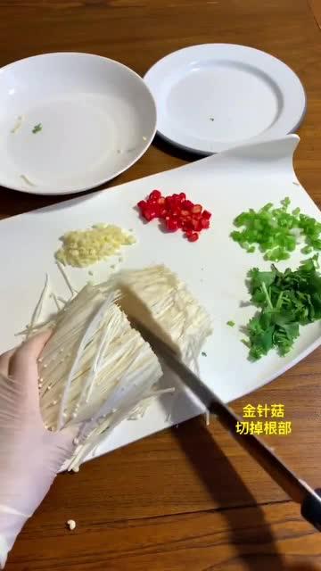 1. 將金針菇洗凈,切成段。
